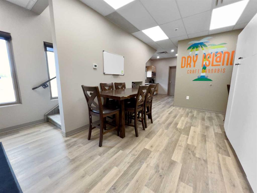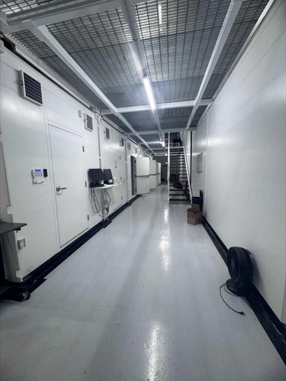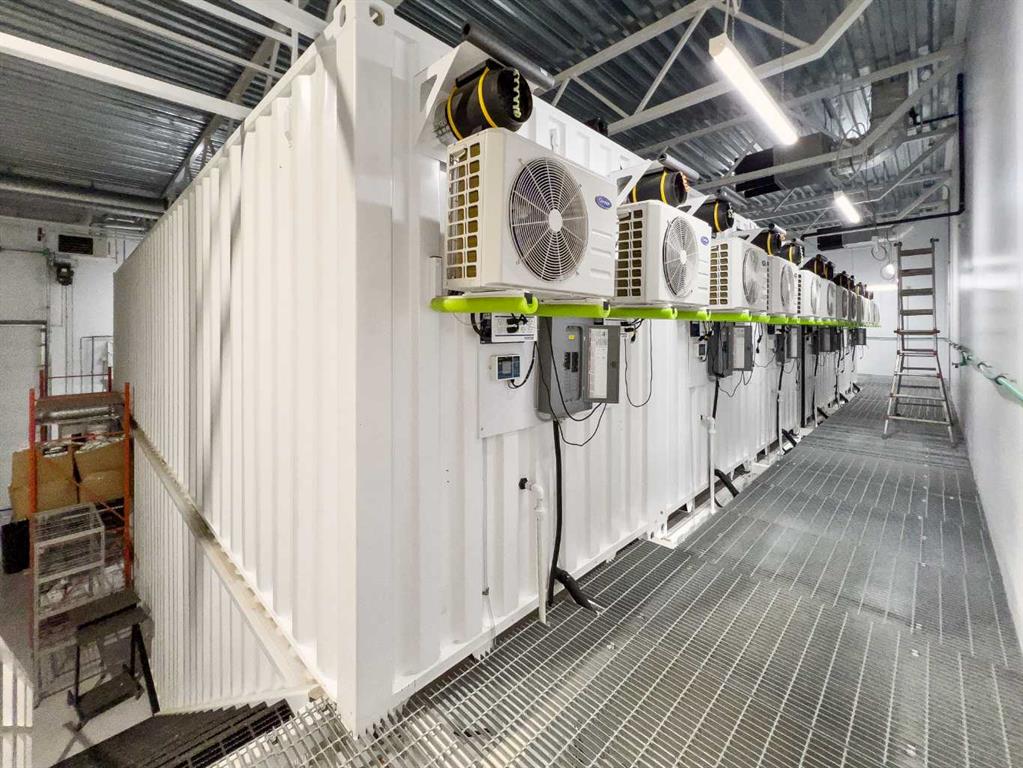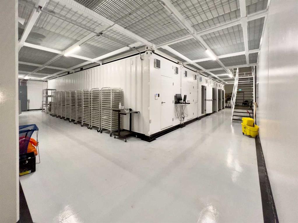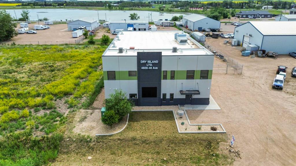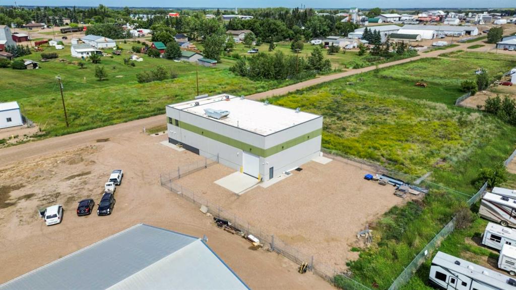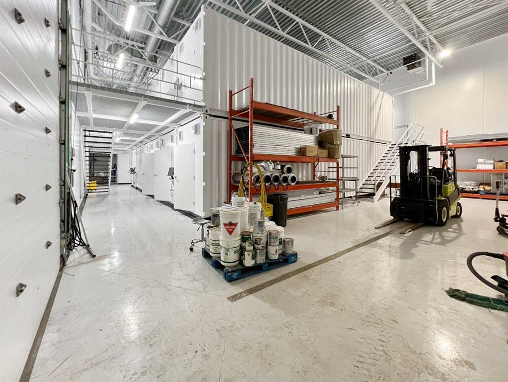 Prime Industrial Facility in Stettler’s East Industrial Area - Nestled in the vibrant community of Stettler, Alberta, this versatile industrial building is strategically positioned in the East Industrial area. Currently configured for indoor growing operations with multiple multi-level grow pods, the facility was originally designed as a micro-growing operation but built with exceptional adaptability for future business uses. The expansive main floor features an open-concept shop area complemented by a spacious upper mezzanine with direct yard access. The rear wall is engineered for straightforward modifications, including the addition of a large overhead door. Additional main-floor amenities include a well-appointed staff area with lockers, a fully equipped kitchen (complete with appliances), a bathroom with shower, and a dedicated server room for IT and security systems. Upstairs, a bright boardroom offers impressive views, alongside a separate bathroom and two private offices. This property boasts numerous high-value features, including a professionally monitored security and camera system, integrated water lines, three charcoal exhaust units, a large water tank, an industrial wash sink area, pressure washer, and chemical mixer. Ample outdoor space is available within the fully fenced yard for storage or additional operations. Designed for functionality and future potential, this exceptional facility must be viewed in person to fully appreciate its possibilities. Stettler, with a population of approximately 5,900 residents and a surrounding county of about 5,900, serves as the Heart of Alberta—centrally located and surrounded by numerous smaller towns and villages, offering a strong regional market and lifestyle.