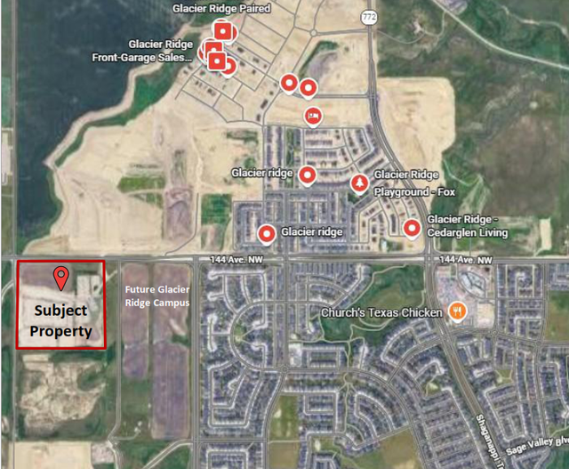 Property currently operating as a revenue generating RV storage. Located within the Glacier Ridge Area Structure Plan and is designated for future Industrial use. Situated along 144 Avenue NW, the property is